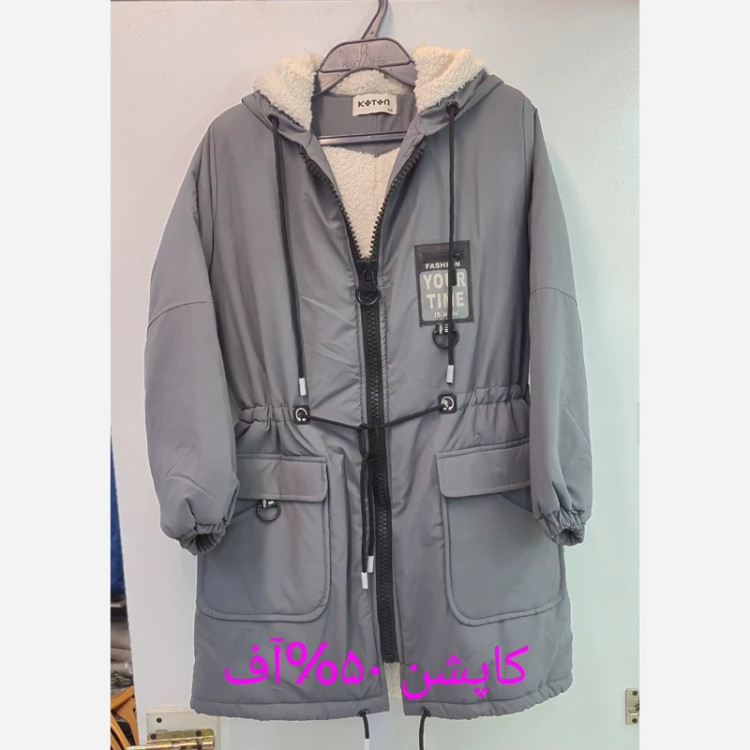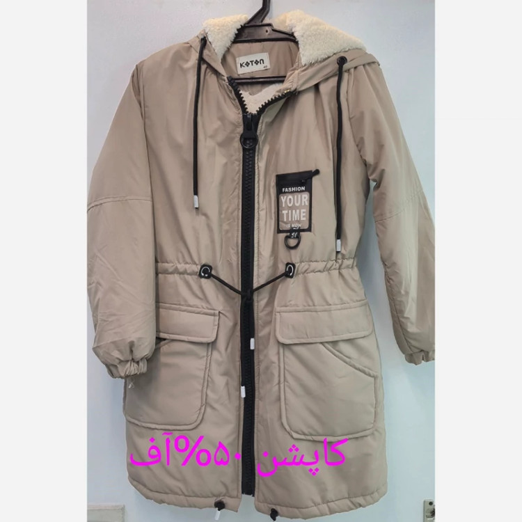کاپشن بلند ضخیم کلاه دار داخل خز